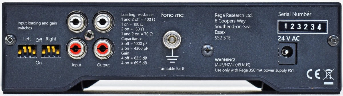 באמצעות מתגי דיפ הממוקמים בלוח האחורי, עם שתי הגדרות הגבר שונות בלוח האחורי, מה שהופך את Fono MC לתואם