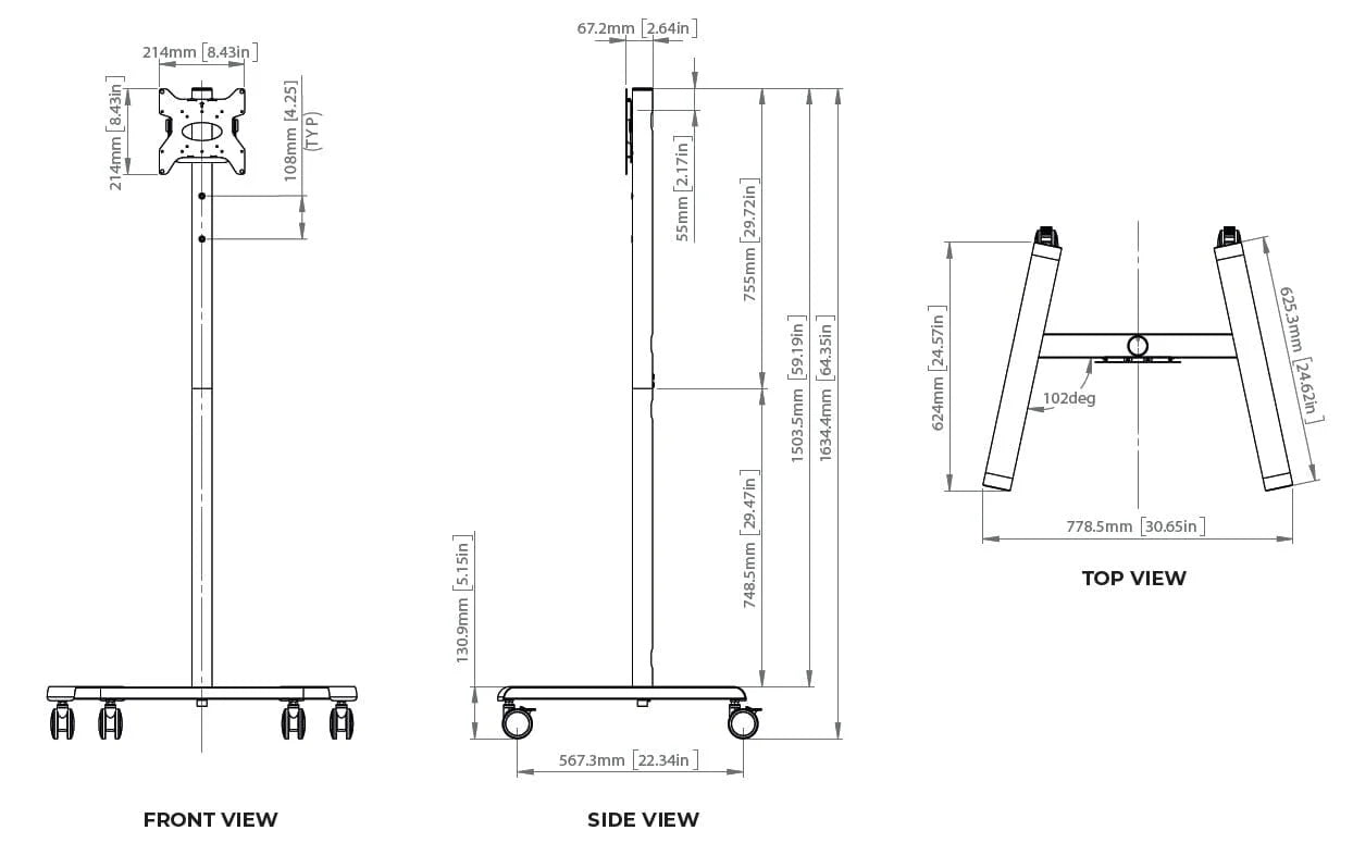 המעמד BT7504 מסופק עם 4 גלגלים איכותיים ללא סימון לניידות קלה.