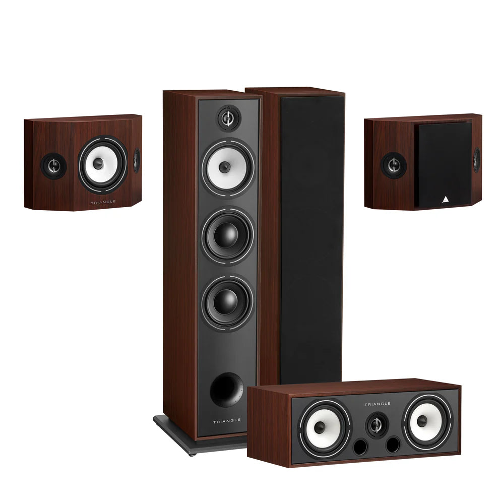 מארז זה של חברת Triangle הצרפתית, הכולל שני רמקולים קדמיים BR08, ערוץ מרכזי BRC1 וזוג רמקולים On Wall BRS1, מהווה בחירה מצוינת עבור חדרים גדולים ששטחם מעל 60 מ"ר.